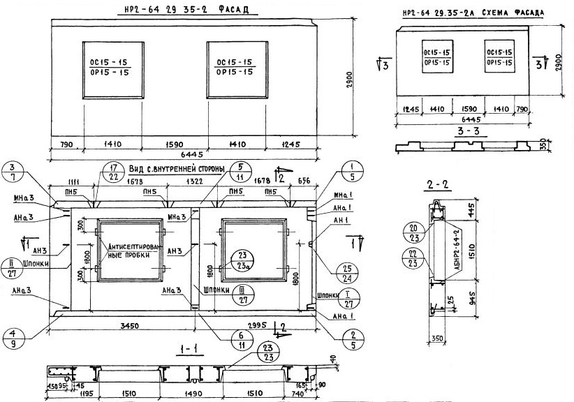 НР2-64.29.35-2л   Наружная стеновая панель рядовая по Серии 1.132-1.