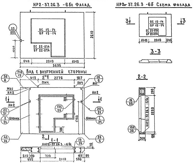 НР2л-37.26.3-6б    Наружная стеновая панель рядовая по Серии 1.132-2.
