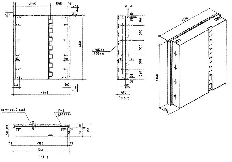 Стеновые легкобетонные блоки толщиной 40 см по Серии 1.133-1.